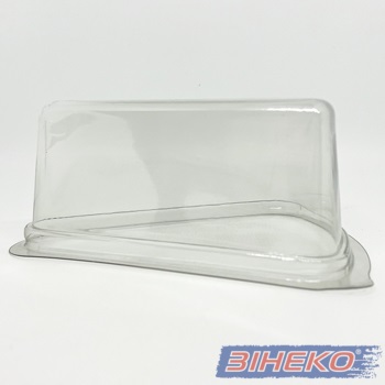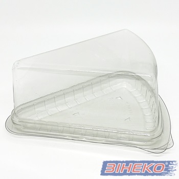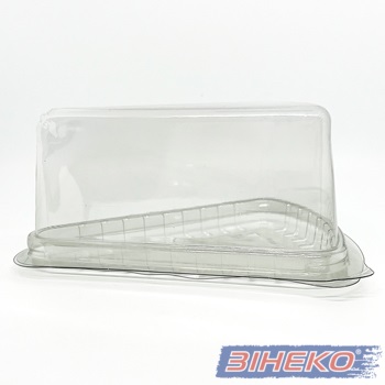 Ємність для порції торта – зручна та практична тара, виготовлена з нетоксичного матеріалу для зберігання харчових продуктів. Ємність для порції торта використовується для штучного фасування різних штматочків торта. Така подача преверне увагу покупця та стане додатковю перевагою вашої продукції. Ця ємність, складається з двох частин, має знімну прозору кришку, що відкривається, яка не дає повітрю проникнути всередину та допомагає шматочкам торта залишатися свіжим довгой час.
