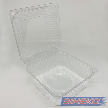 Ємність з відкидною прозорою кришкою – зручна пластикова тара для харчових продуктів і напівфабрикатів. Застосовують в кулінарії, для салатів, для розфасовки кондитерських виробів (зефіру,печева, цукерок,горіхів), для сиру, сиркової маси, овочів та фруктів. Вона повністю прозора, що дає покупцеві бачити вміст, виготовлена з нетоксичних речовин та зручна у використанні та транспортуванні, за рахунок замків, продукція не випаде із тари.