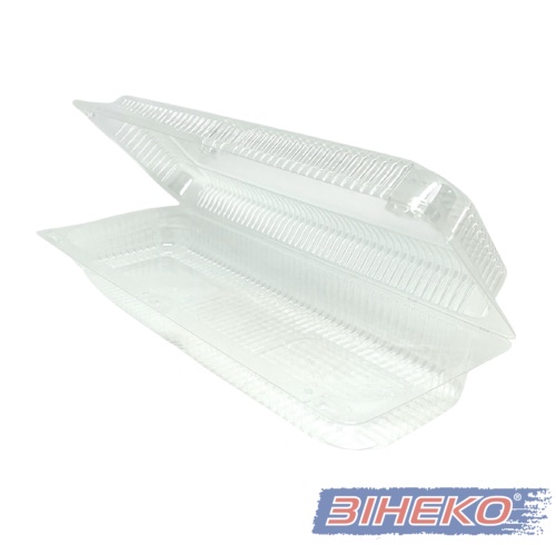 Зручна пластикова тара для харчових продуктів і напівфабрикатів. Застосовують в кулінарії, для салатів,для розфасовки кондитерських виробів (зефіру,печева, тортів, рулетів, цукерок,горіхів), також для м’яса, риби та інших харчових продуктів. Вона повністю прозора, що дає покупцеві бачити вміст, виготовлена з нетоксичних речовин та зручна у використанні.