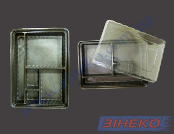ГоловнаЄмності для пакування з кришками Ємність ПС-610ДЧ+кришка ПС-61К (поділки на суші) 180шт