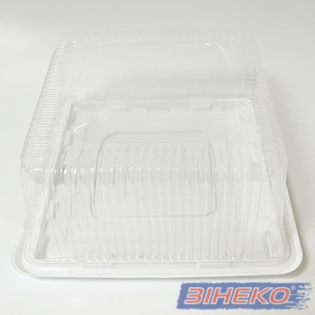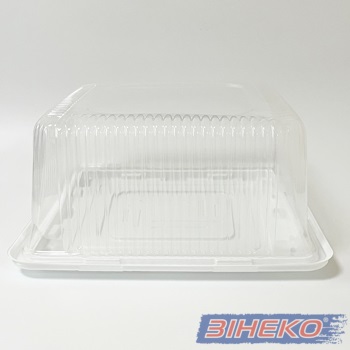 Ємність для торта зручна і практична упаковка, виготовлення з нетоксичних матеріалів для зберігання продуктів харчування. ПС-230 використовується для тортів і перогів без упаковки, підготовлених до вживання.