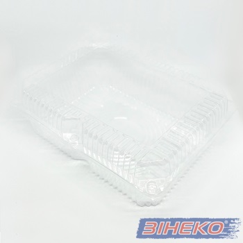 Ємність для торта зручна і практична упаковка, виготовлення з нетоксичних матеріалів для зберігання продуктів харчування. SL-80-1 використовується для тортів і перогів без упаковки, підготовлених до вживання. Ємність прозора, що дає покупцеві бачити вміст продукції, виготовлена з нетоксичних речовин та зручна у використанні та транспортуванні. Ємність має незнімну високу кришку , що відкривається і щільно закривається за допомогою спеціальних замків. А за допомогою вушок на корпусі їх легко відкривати.
