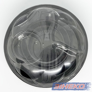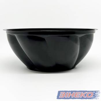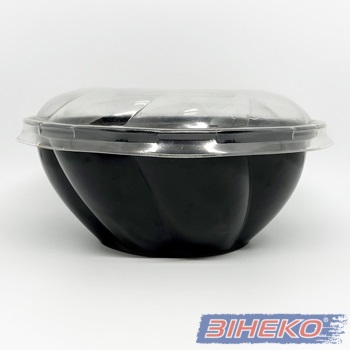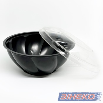 Ємність – салатниця одноразова круглої форми, з чорним дном та прозорою кришкою, зручна у використанні та транспортуванні. Тара виготовлена з нетоксичних речовин, гігієнічна та зручна у використанні. Найчастіше використовують для салатів, фруктів. овочів, але можливо використовувати і для інших продуктів харчування.