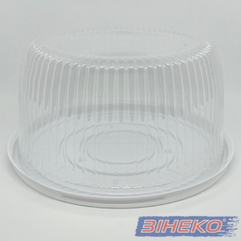 Ємність для торта зручна і практична упаковка, виготовлення з нетоксичних матеріалів для зберігання продуктів харчування. ПС-230 використовується для тортів і перогів без упаковки, підготовлених до вживання.