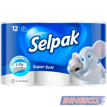 Туал. папір SELPAK максі 3шар. 12рул. 16,8м 140відр. целюлоза білий -015029, -204508 352.98 грн