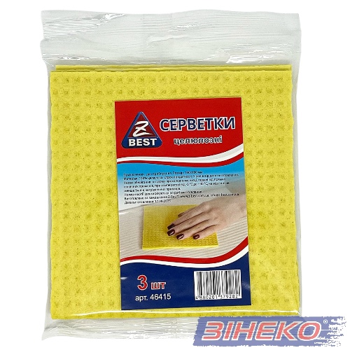 Губки-серветки Z-BEST 16х16см 3шт жовті 4880201379282 Ви можете купити в компанії “ЗІНЕКО”. Серветки для прибирання целюлозні ТМ “Z-BEST” призначені для