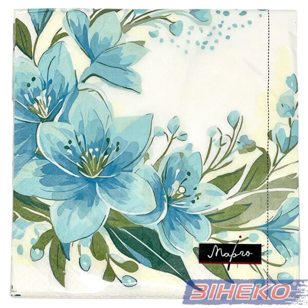 Серветки 33х33см 3шари 18шт Голубі квіти Марго