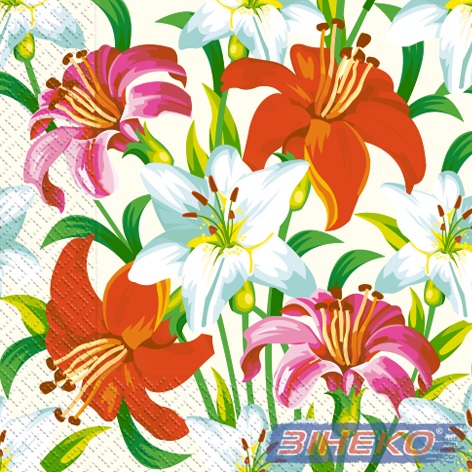 Серветки 33х33 см 3-шарові 18 шт “Королівські лілії” Марго Ви можете купити в компанії «ЗІНЕКО». Серветки паперові з малюнком “Королівські