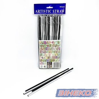 Трубочка фреш-чорно-біла на косу пряма 25см d=8мм 500шт